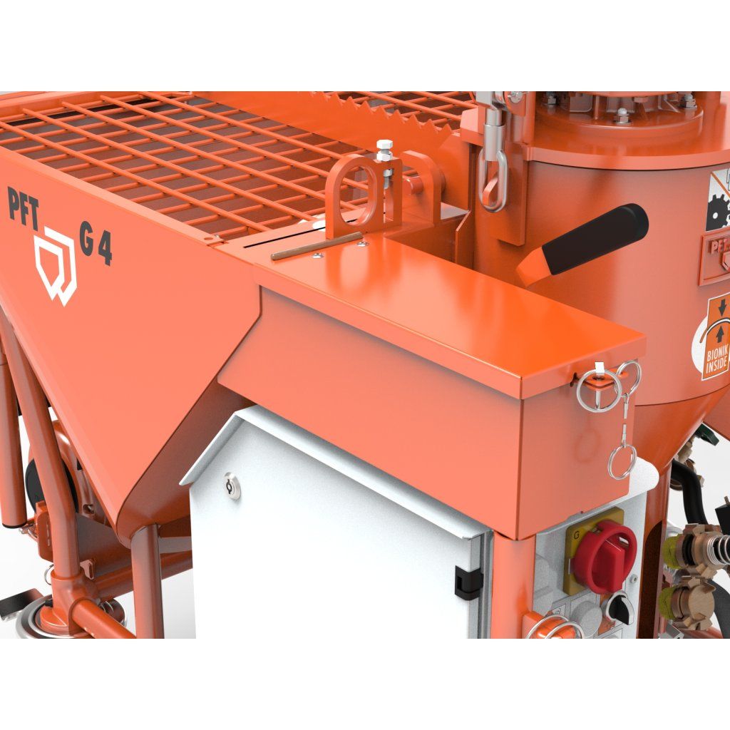 Lze jej zásobovat materiálem jak z vaků, tak z bunkrů přes průtokový kryt PFT nebo ofukovací kryt PFT SILOMAT.